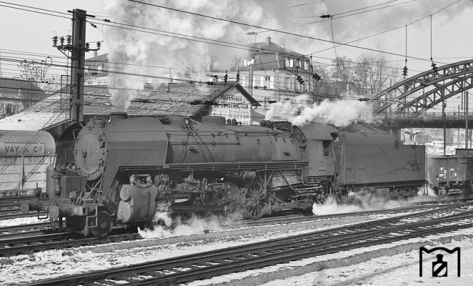 Die letztgebaute Lok, die 141.R.1340 durchfährt mit einem Schnellzug 1968 den Bahnhof Nantes im Westen Frankreichs. Copyright:  Alan Orchand/ Slg. Eisenbahnstiftung