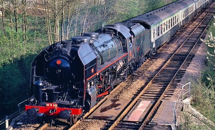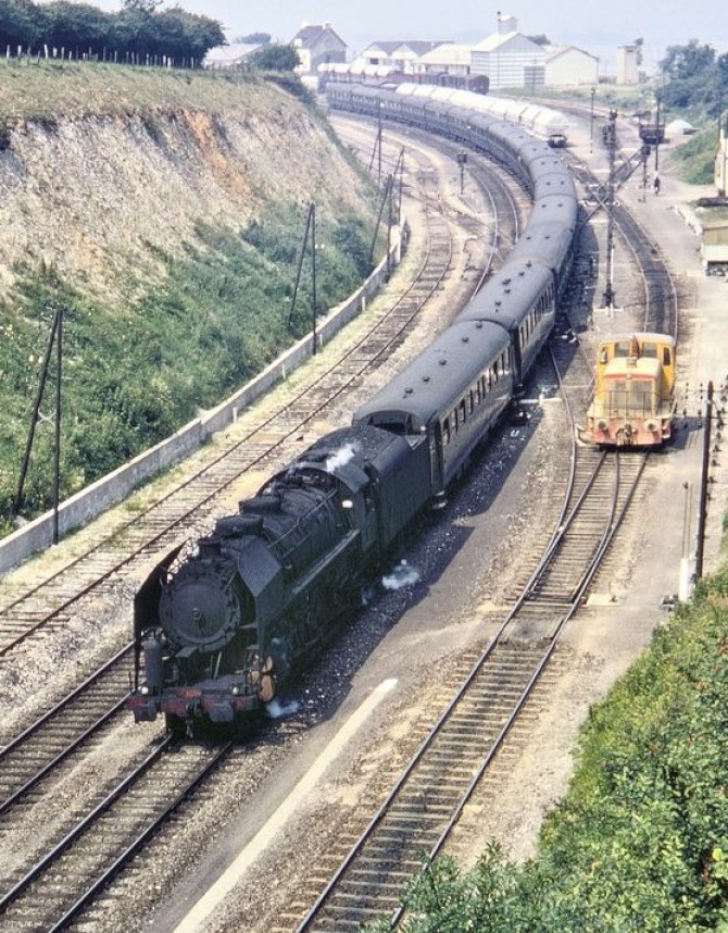Bild oben: 141.R.1173 im Dienst des edlen Fernzuges "MISTRAL" steht 1964 abfahrbereit in Nizza. Copyright: Konrad Pfeiffer / Slg. Eisenbahnstiftung.