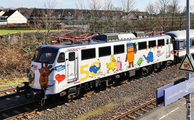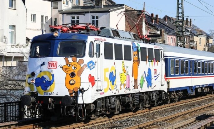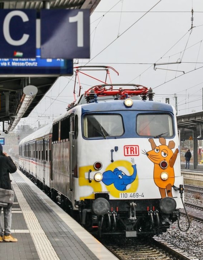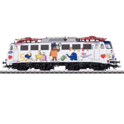 Vor 50 Jahren gesellte sich der kleine blaue Elefant erstmalig zur (Sendung mit der) Maus und begleitet sie seitherbei Ihren Abenteuern. Die TRI (Train Rental GmbH) nahm diesen Geburtstag zum Anlass dem Elefanten eine entsprechende Bühne zu spendieren. Man entschloss sich die dem Unternehmen gehörende Elektrolok 110 469-4 in Anlehnung zur "Maus-Lok" von 1996 dem Elefanten zu widmen. Seit dem 08.01.2025 Fährt die Lok nun mit dem Elefanten und seinen Freunden in Deutschland "spazieren" und begeistert unter dem Titel "Elefanten-Express" viele kleine große Maus und Elefanten-Fans.
